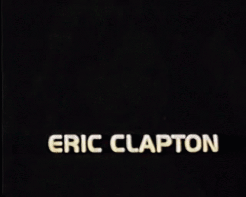 Stylized red and black image of Eric Clapton's face with his name, related to George Harrison and The Beatles.