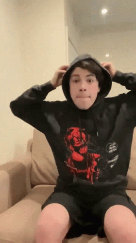 GeorgeNotFound shows a shocked reaction while wearing a black hoodie featuring Corpse Merch.