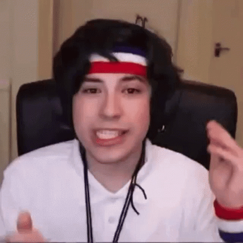 GeorgeNotFound, also known as Gnf, makes peace signs while wearing a patriotic headband and wristbands.