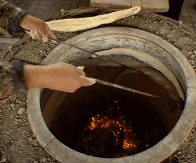 Traditional Georgian bread (Dedas Puri) being baked in a tandoor oven in Kakheti, Georgia.