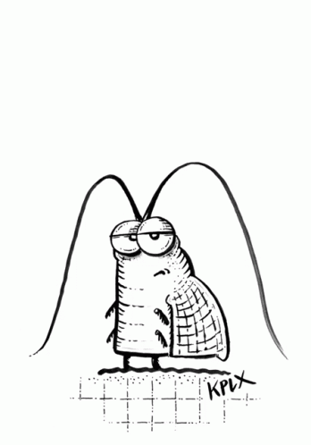A black and white cartoon by Gerd Kplx featuring a cockroach with a thought bubble saying 'LAPPEN'.