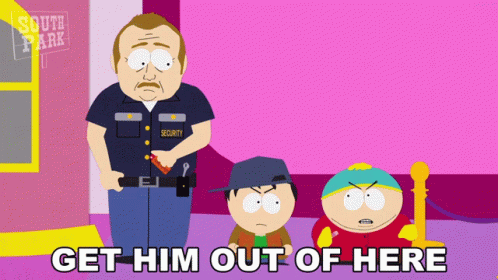 Eric Cartman and Stan Marsh in a classic South Park scene with the text 'GET HIM OUT OF HERE'.