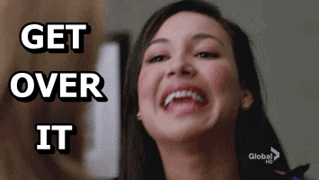 Naya Rivera as Santana Lopez from Glee emphatically says 'Get Over It' with a strong expression.