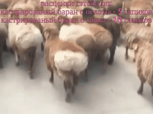 Russian text about Gatsby RP prices for castrated rams from infantry and tanks, shown over a herd of sheep.