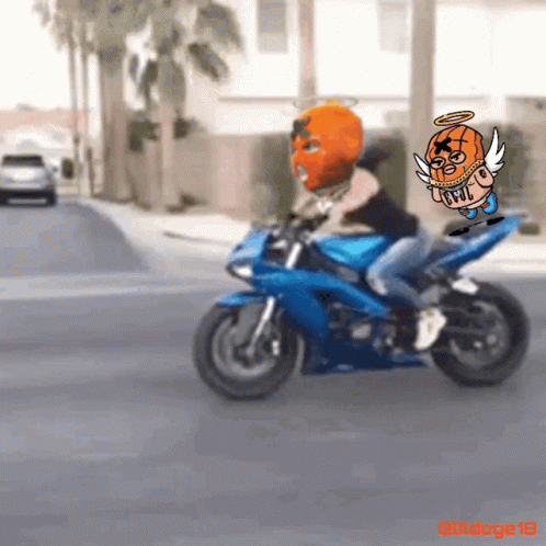 Gevol Kideight performs a motorcycle wheelie with lildoge18 floating alongside.