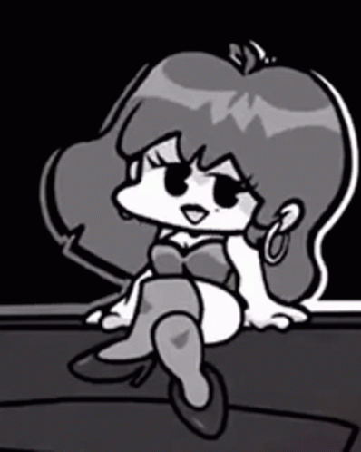 GF from Friday Night Funkin' sitting and posing confidently in a black and white scene.