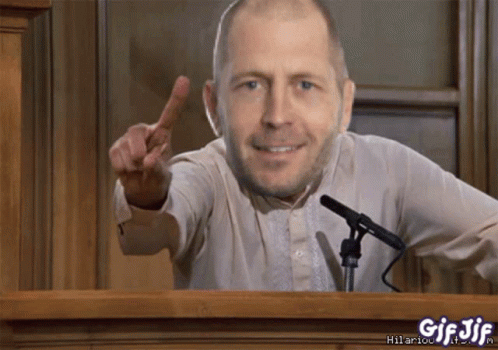 A man with a bald head points his finger while speaking at a podium with a microphone.