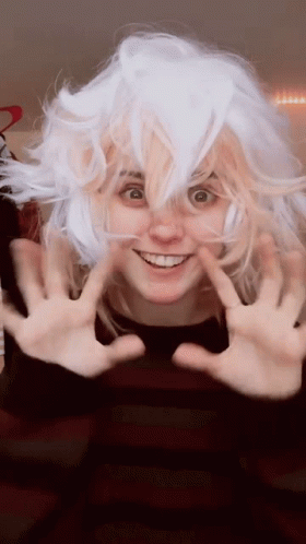 Gh0sti3 Richie with messy white hair and green nails, making a playful roaring face for the camera.