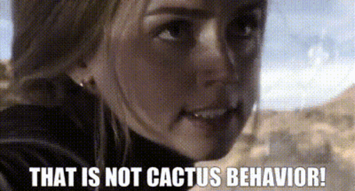 Sadie Rhodes (Ana de Armas) reacts with disbelief, exclaiming 'That is not cactus behavior!' from the movie Ghosted.