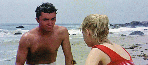 James Darren and Sandra Dee share a moment on the beach in this classic Gidget movie scene.