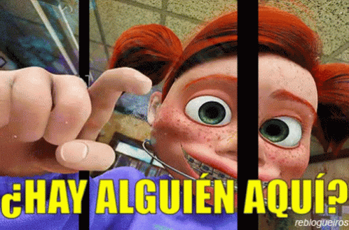 A cartoon character, Darla from Finding Nemo, looks through bars with the text '¿Hay Alguien Aquí?' (Is Anyone Here?) displayed.