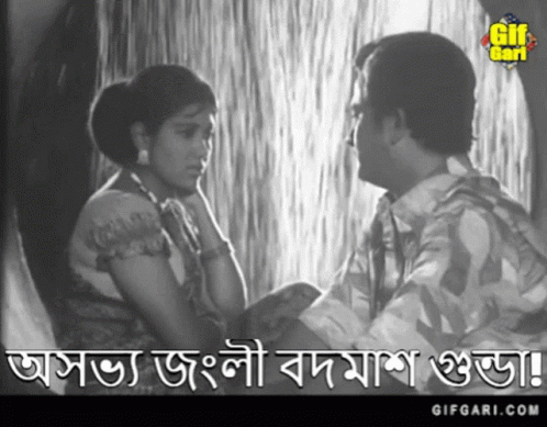 Kabori and Razzak in a classic black and white Bengali cinema scene, featuring a dramatic embrace.