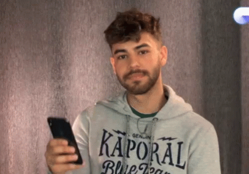 Agoney Zaz, a man in a Kaporal hoodie, holds a smartphone, possibly speaking or recording.