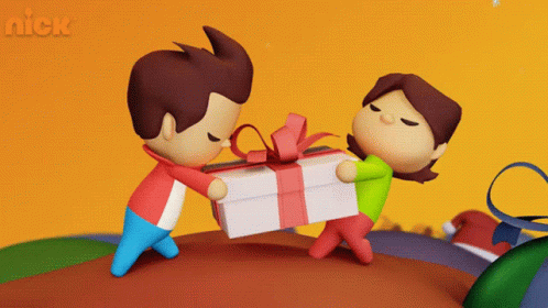 Gopal and Madhav from Golmaal Jr. struggle to carry a large gift box, showcasing sibling rivalry.