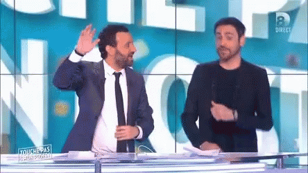 Camille Combal on the set of TPMP, clapping and interacting with the audience.
