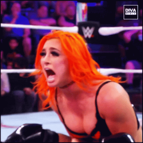 Gigi Dolin shows an intense, emotional reaction in the WWE wrestling ring, grabbing her head in frustration.