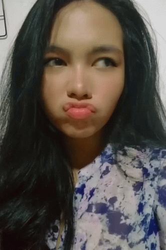 Young woman pouting and rolling her eyes playfully in a selfie-style video.