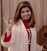 Topanga Lawrence from Girl Meets World smiles playfully, wearing a white robe and red shirt.