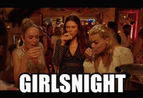Nienke Plas and friends enjoy a lively girls' night out, taking shots and having fun at a bar.