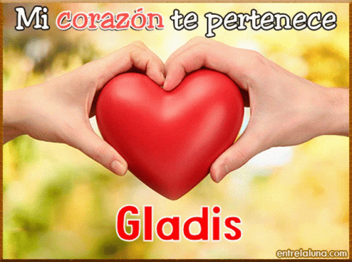 Hands forming a heart shape with the message 'My heart belongs to you, Gladis' for a romantic gesture.