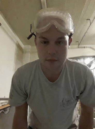 Vladoce, a bald man, puts on safety goggles and gives a confident thumbs up to the camera.