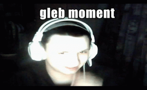 Gleb in a 'gleb moment' wearing headphones, looking around with a subtle smile.