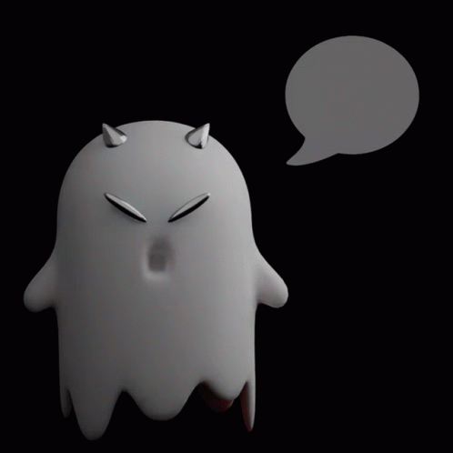 An angry Meta Ghost character with horns says 'GM' in a speech bubble, representing the NFT and metaverse space.