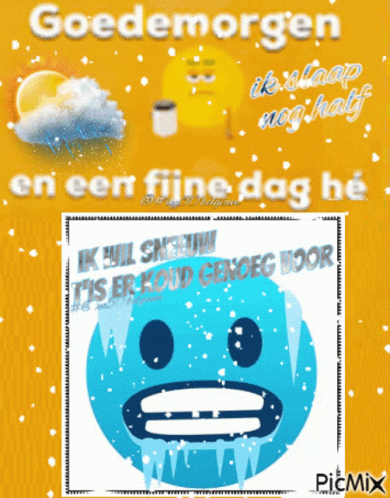 A good morning message featuring a cold emoji wishing for snow, stating 'It's cold enough for it'.