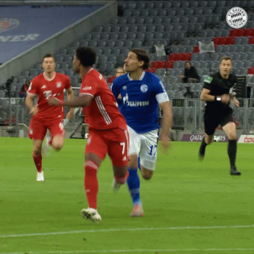 Serge Gnabry showcases impressive dribbling skills for FC Bayern München in a football match.