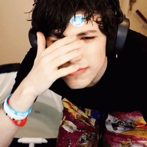Georgenotfound, also known as Gnf, shows a surprised and wide-eyed reaction while wearing headphones.