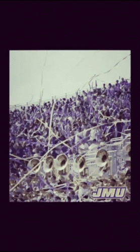 JMU Dukes football celebration with enthusiastic fans, a marching band, and streamers flying high.