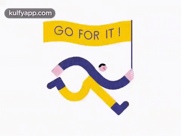 Animated man runs with a 'Go For It!' banner, symbolizing motivation and success.