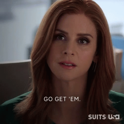 Donna Paulsen and Harvey Specter deliver an encouraging 'Go get 'em' message from Suits.