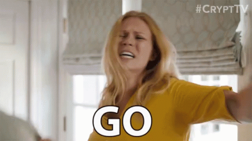 A woman in a yellow shirt screams 'Go!' and gestures for someone to leave in this intense clip.