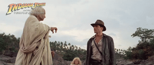 Indiana Jones, Willie Scott, and Dr. Nanayakkara are told to 'go' by a shaman in Temple of Doom.