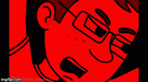 Goanimate character in a red alert state, looking angry with mouth open and glasses.