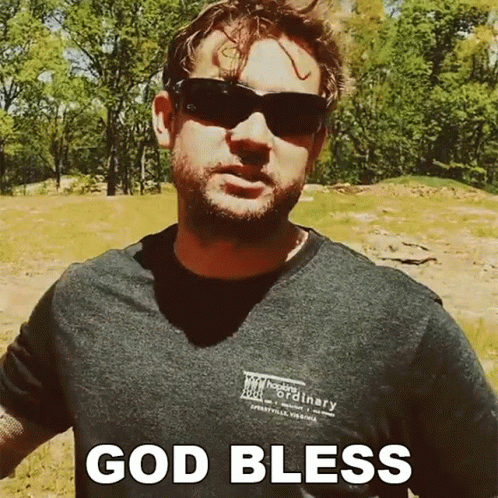 Brandon Lay delivers a 'God Bless' message outdoors, wearing sunglasses and a Hopkins Ordinary t-shirt.