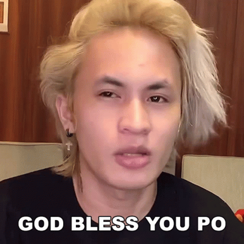 Mikoy Uy, with blonde hair, delivers a heartfelt 'God Bless You Po' message to the camera.