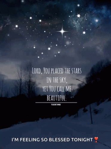 A beautiful night sky with stars and a quote about God's creation and feeling blessed.