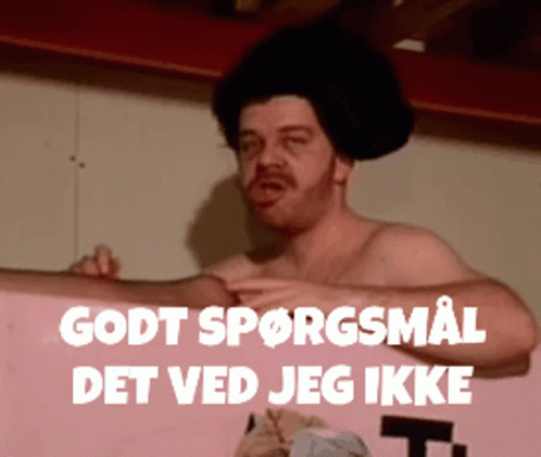 Smokey Spartacus from Mandrilaftalen delivers the iconic line: 'Godt Spørgsmål, Det Ved Jeg Ikke' (Good Question, I Don't Know).