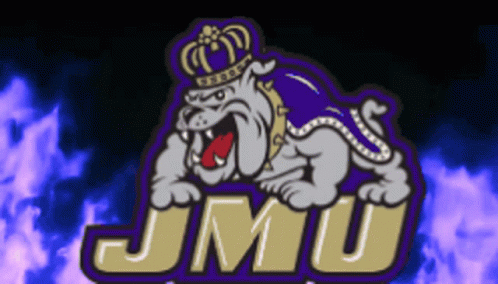 The James Madison University (JMU) Godukes bulldog logo, a crowned bulldog, animated with purple flames.
