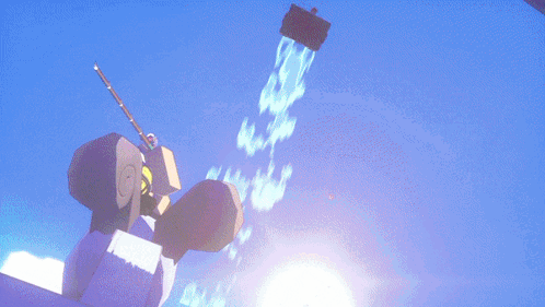 a cartoon character is standing on a balcony with the sun shining brightly in the background