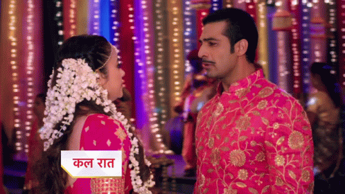 Gohem and Gopi share an intense moment, dressed in traditional Indian wedding attire amidst festive lights.