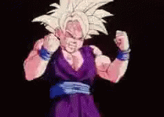 Goku unleashes his intense fury, transforming with a powerful yell and bright yellow aura.