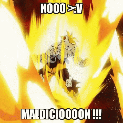 Goku Son Goku from Dragon Ball reacting intensely with the caption 'nooo > v damnation!!!' in a dramatic moment.