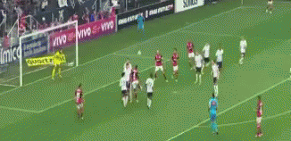 Rever scores a spectacular volley goal in the Corinthians vs Flamengo football match.
