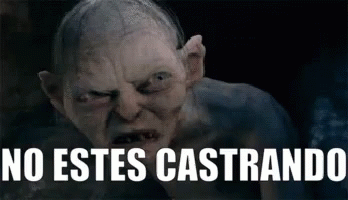 Gollum from Lord of the Rings screaming with the Spanish caption 'No Estes Castrando' (Don't be annoying).