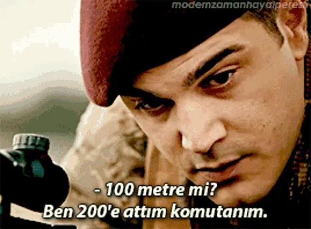 A man in a military uniform asks "Adı ne?" (What's her name?), and another man replies "Gonca."