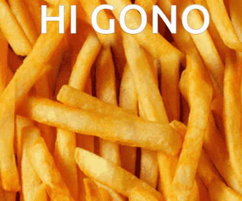 Gono Ries with a close-up of golden french fries, featuring the text 'HI GONO' on top.