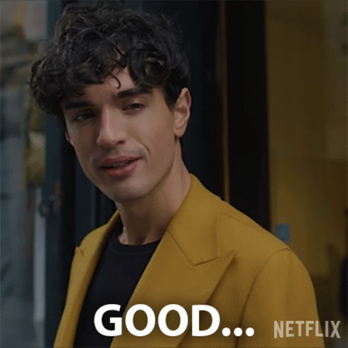 James Cusati-Moyer from Inventing Anna smiles as text 'GOOD...' then 'BETTER!' appears on screen.
